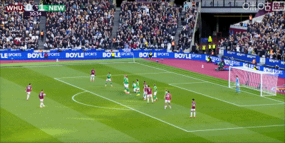 第36分钟,世界波!帕奎塔精彩远射扳平比分,西汉姆1-1纽卡
